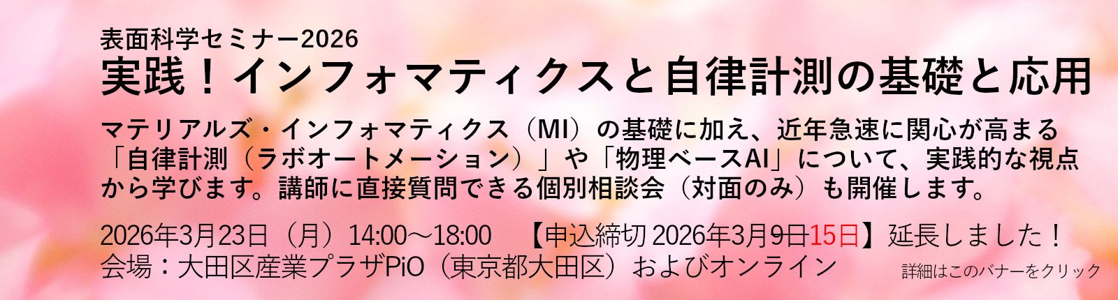 表面科学セミナー2026 実践!インフォマティクスと自律計測の基礎と応用