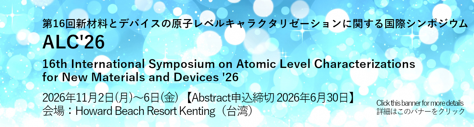 ALC'26 第16回新材料とデバイスの原子レベルキャラクタリゼーションに関する国際シンポジウム(2026.11.1-6 台湾)